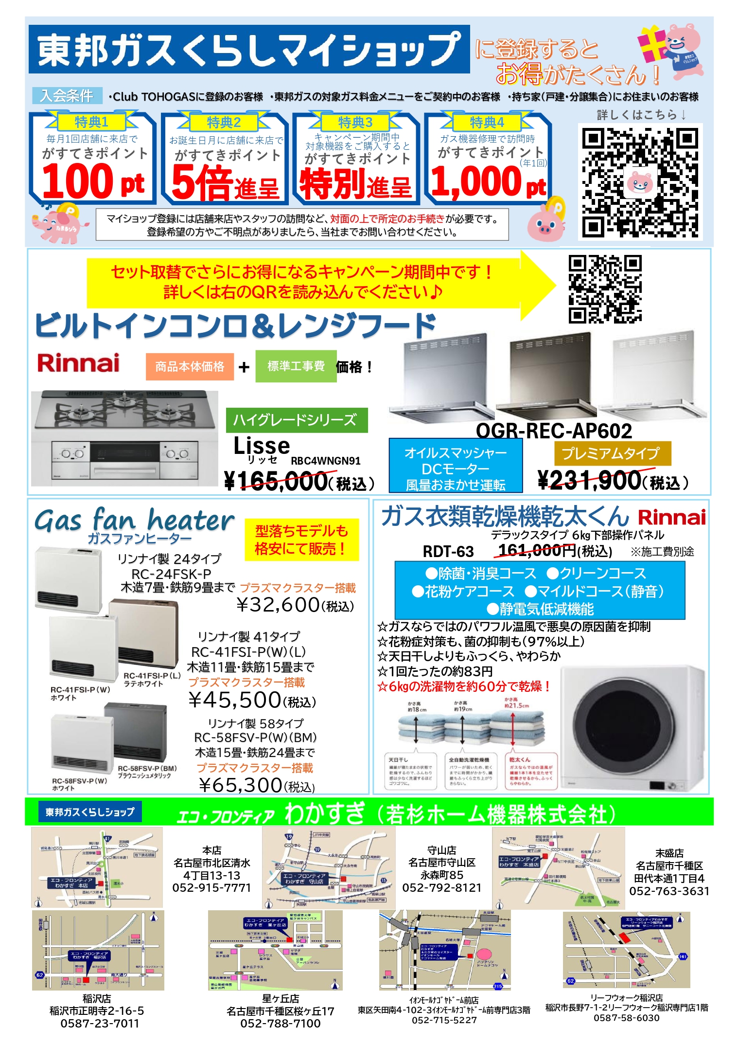 詳しいキャンペーンの詳細につきましては、下記東邦ガスサイトをご確認いただくか、弊社販売員までお気軽にお尋ねください。