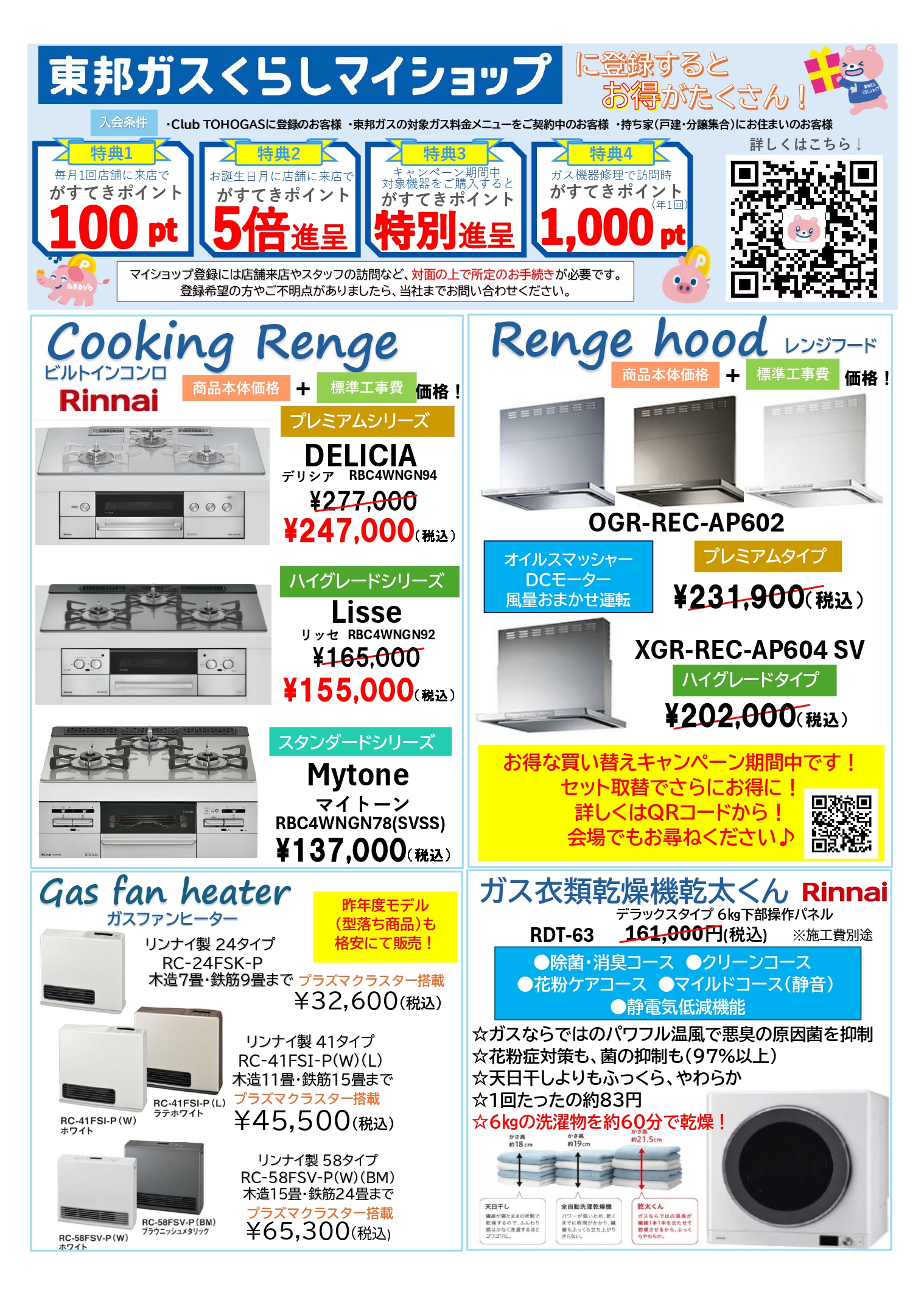 ※但し、レンジフードのお値引きは東邦ガスの電力をご契約いただいた方に限ります。